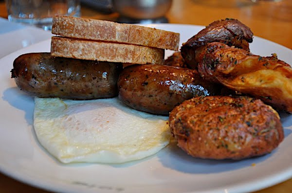 Lola breakfast included two eggs, pork-maple sausage, smashed garlic fried potatoes and toast. Four words: smashed garlic fried potatoes.