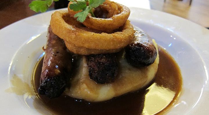 Bangers and mash – a traditional English dish made of mashed potatoes and sausages.