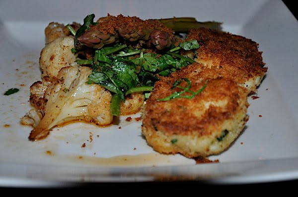 Lemon~scallion dungeness crab cakes (with new bay spiced cauliflower, pickled asparagus, watercress, remoulade, and bacon salt) was the bomb. It was better than any crab cakes I have had from the New England and Baltimore area. There was nearly no bread in these crab cakes. Every bite was fresh chunks of crab.