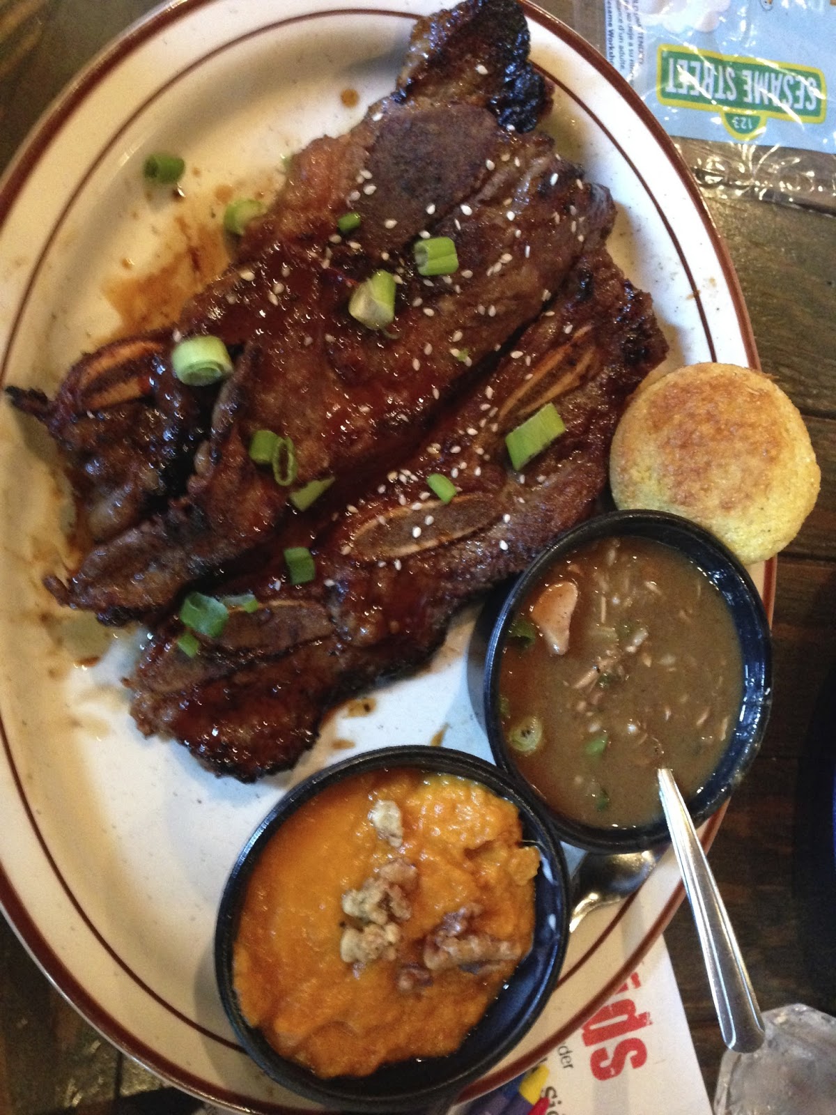 I was so excited to finally visit the birthplace of Dinosaur BBQ. The place was very happening on a weekday night. I tried the St. Louis ribs, brisket, chicken, homemade smoked sausage and some sides - all traditional BBQ goodness.