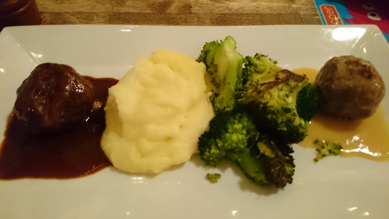 Game Balls - Duo of duck & venison meatballs, clementine coriander sauce, cherry-ancho sauce, Smoked Gouda mashed, spinach