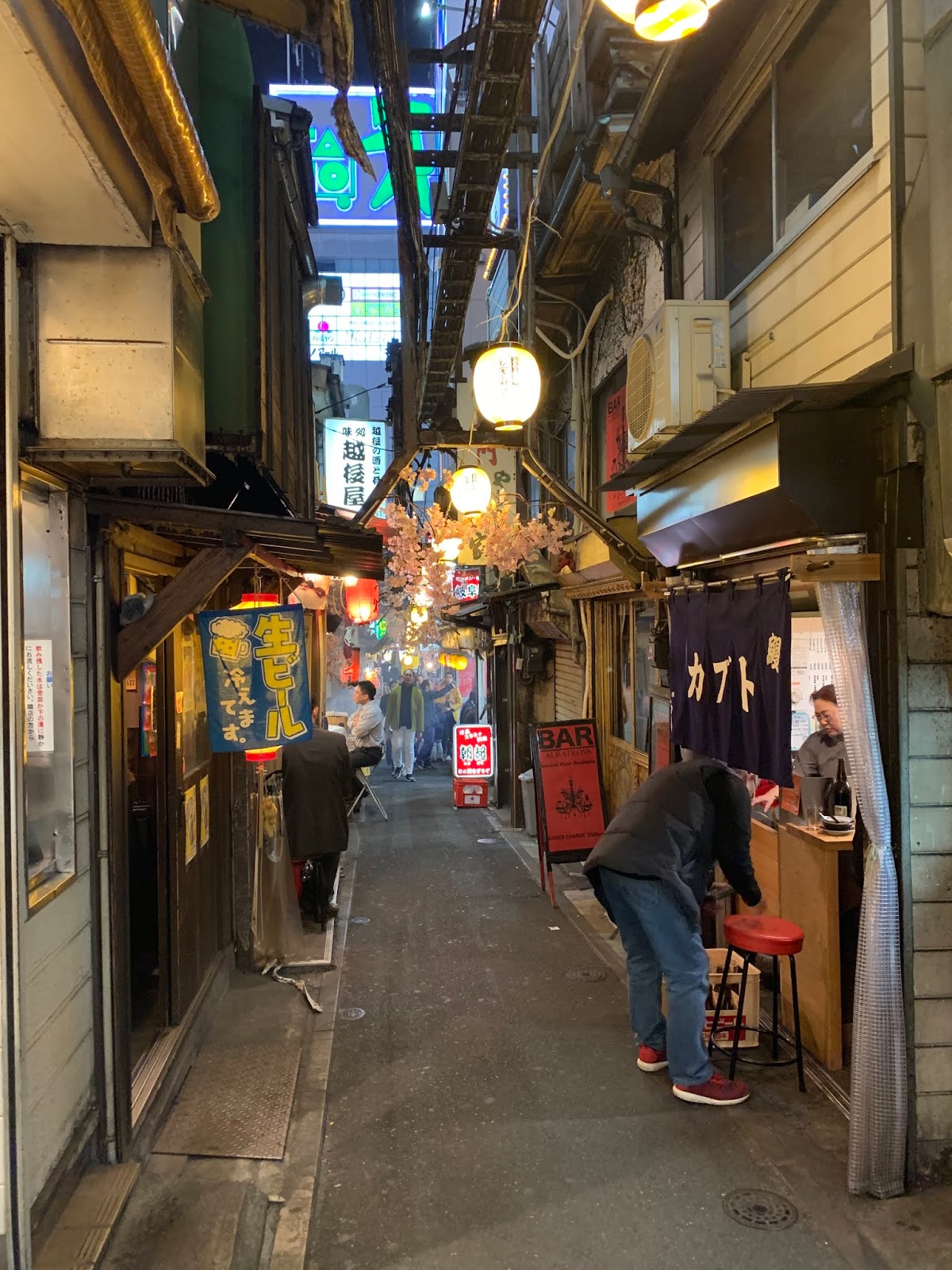 Omoide Yokocho is a maze of narrow alleys filled with tiny restaurants and open barbecue food stalls. It was fun walking shoulder to shoulder with hungry people and looking for the right stall for a meal.